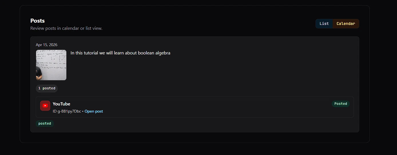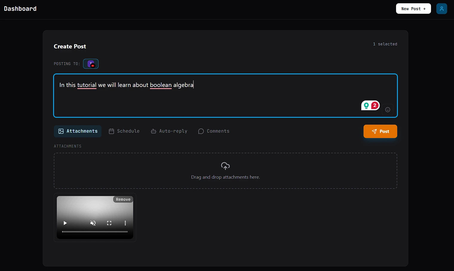 The clean interface for drafting posts, attaching videos, and selecting your target platforms simultaneously.