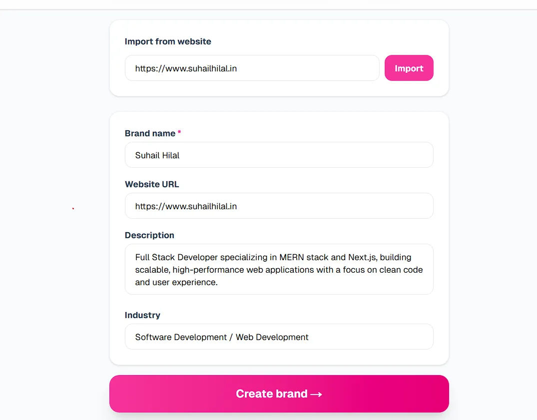 Instead of writing long, frustrating manual prompts (e.g., "Act like an expert full-stack developer who speaks casually but professionally..."), you simply paste your live website URL. The AI instantly scrapes your existing copy, analyzes your value proposition, and automatically extracts: