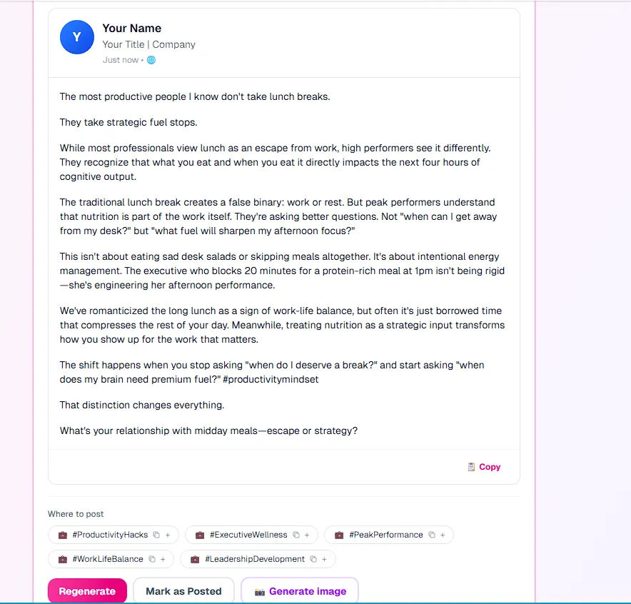 Faced with this algorithm treadmill, most builders eventually turn to generic AI chatbots for help. The result? Robotic text stuffed with excessive emojis and painfully obvious AI buzzwords (“delve,” “a testament to,” “unlock your potential”). The output feels fundamentally inauthentic, instantly alienating the audience you are trying so hard to build.